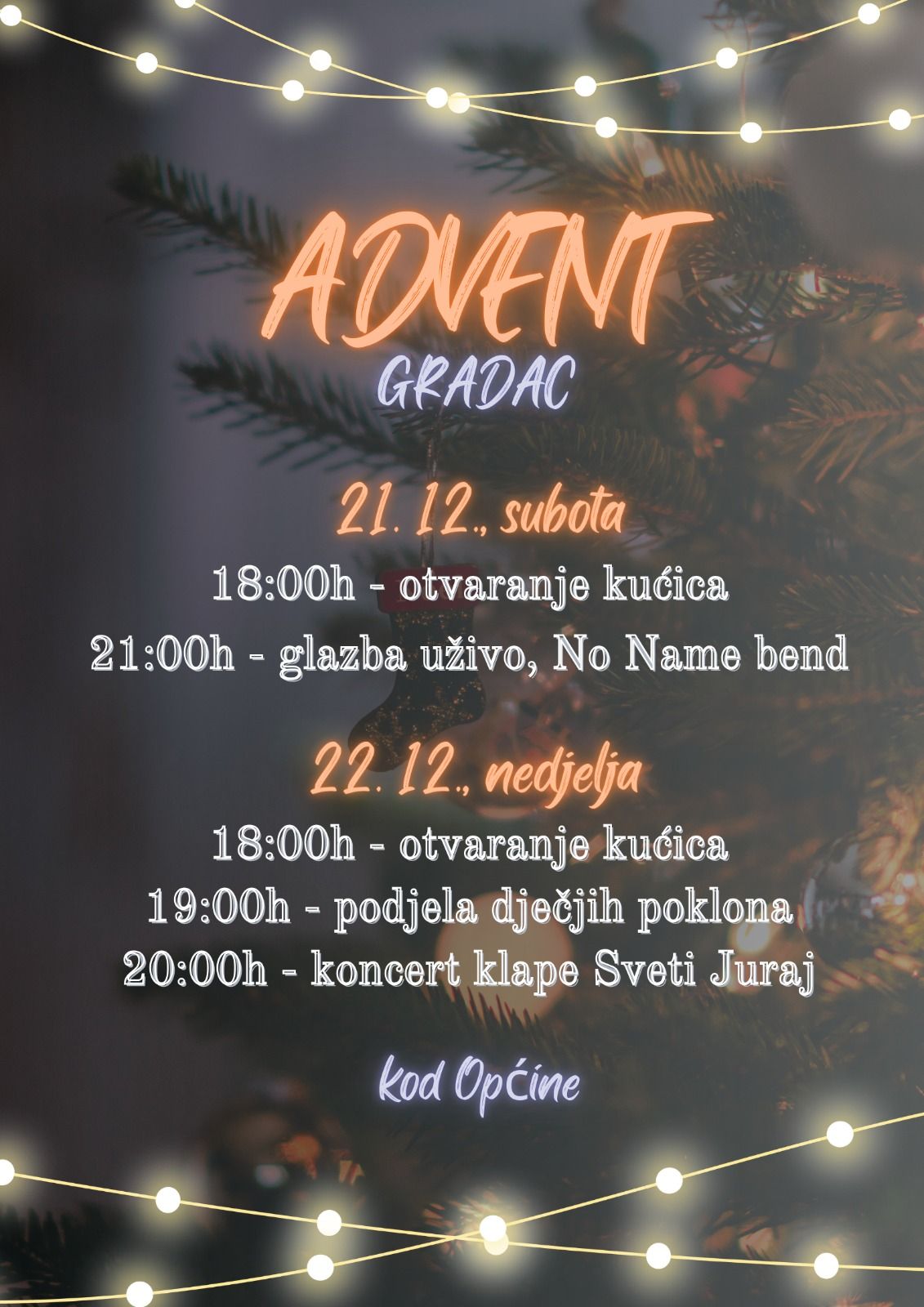 Udruge s područja Općine, uz potporu lokalne samouprave, i ove će godine za božićno vrijeme upriličiti cijeli niz prigodnih događanja za žitelje i goste naše lokalne zajednice.