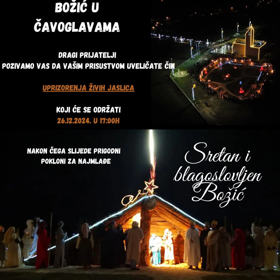 Na blagdan Svetog Stjepana, u četvrtak 26. prosinca, Udruga Čavoglave će na platou Crkve hrvatskih mučenika u Čavoglavama i ove godine organizirati nadaleko poznato uprizorenje „živih jaslica“. Tradicionalno bogato dekorirano i dobro posjećeno uprizorenje zacijelo će i ove godine biti na visini očekivanoga.