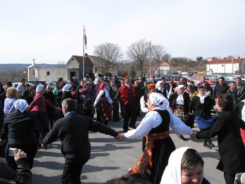 Potom se se nazočni uputili na plato ispred crkve gdje je KUD izveo svoj prvi folklorni nastup. U nazočnosti više stotina ljudi Kljačani su praćeni zvukom dipala i gusala, zapjevali i zaplesali svoje prvo kolo. Prekrasan gotovo proljetni dan i raspoloženi pjevači i plesači učinili su da je program i prigodni domijenak potrajao dobrih dva sata, pa su mnogi zacijelo zakasnili na svoj nedjeljni objed. No, zasigurno nisu požalili.