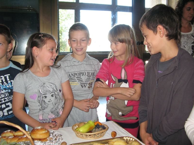 Školske klupe na pola sata su se pretvorile u primamljivu trpezu svakojakih uradaka od žitarica. Plodove polja i vrijednih ruku naših domaćica prvo je blagoslovio gradački župnik fra Jozo Jukić, a potom su se, počevši od vrtićke djece pa do učenika trećeg razreda, izmjenjivali recitali i igrokazi u čast „majke svih namirnica“.