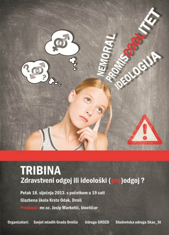 S obzirom na kontroverze koje prate uvođenje zdravstvenog odgoja, to jest njegovog četvrtog modula, pozivamo sve građane, posebice roditelje djece školskog uzrasta, da dođu na tribinu gdje će moći dobiti mjerodavne informacije, te shodno tome donijeti i ispravan sud.