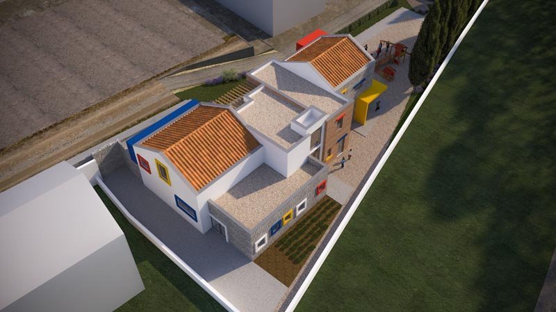 U foto galeriji možete vidjeti 3D simulaciju smještaja budućeg dječjeg vrtića na lokaciju zapadno od škole u Gradcu.