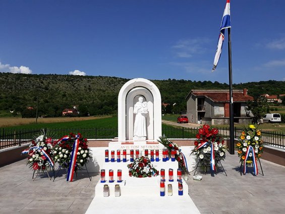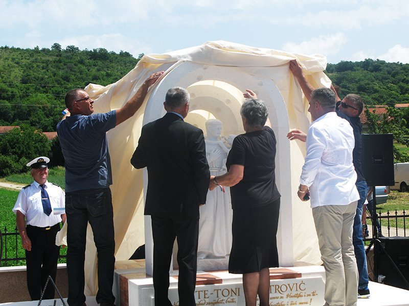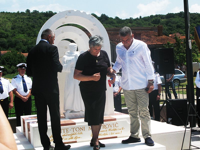 Potom se povorka predvođena pripadnicima hrvatskih povijesnih postrojbi uputila do petstotinjak metara udaljenog spomen obilježja koje su svečano otkrili majka pokojnog Ante Meštrovića Kata Meštrović, državni tajnik u ministarstvu hrvatskih branitelja Ivan Vukić Niper te umirovljeni general HV-a Ante Gotovina.