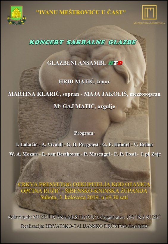 Koncert organiziraju Općina Ružić, Muzeji Ivana Meštrovića i Hrvatsko-talijansko društva iz Zagreba.