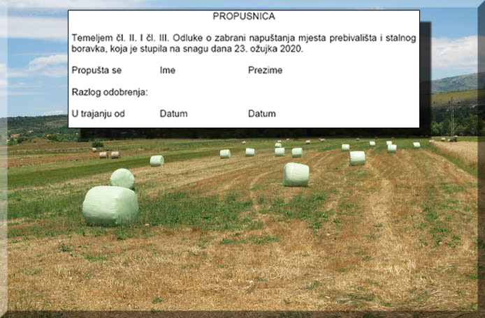 - kako bi se omogućila nužna putovanja radi nabavke svih vrsta repromaterijala (sjeme, gnojiva, sredstva za zaštitu bilja, goriva, maziva, rezervni dijelovi, alati, strojevi,… ), bez čega neće biti proizvodnje ove sezone.
