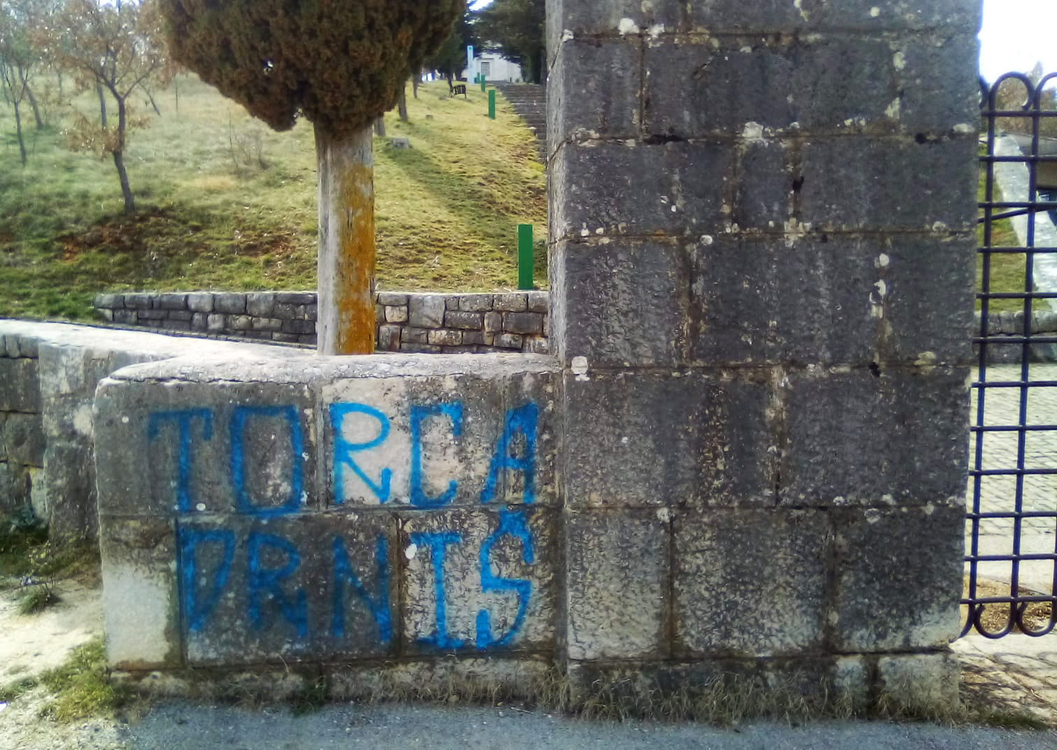 „U petak ujutro, 2. travnja 2021. godine na vanjskom dijelu ogradnog zida koji okružuje brežuljak na čijem se vrhu nalazi Crkva Presvetog Otkupitelja – grobnica obitelji Meštrović, kod Otavica, osvanuo je grafit. Postupak za sada nepoznate osobe ili osoba grubo je oštećenje zaštićenoga kulturnog dobra i spomeničke lokacije od iznimnog značaja.