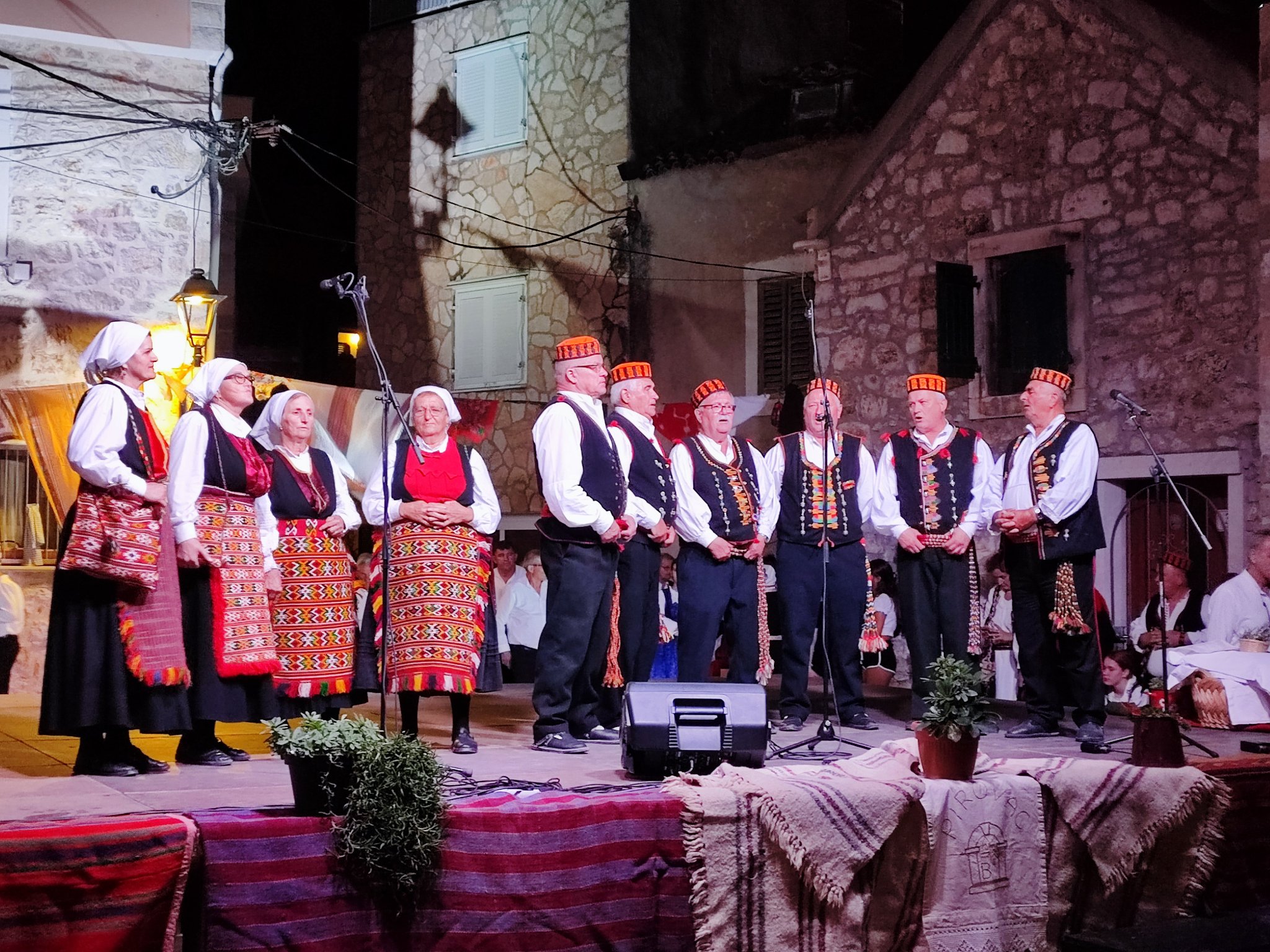 Nakon mimohoda KUD-ova od crkve Male Gospe do školskog igrališta koji kreće u 19:00 sati, slijedi folklorni program u kojem nastupaju: